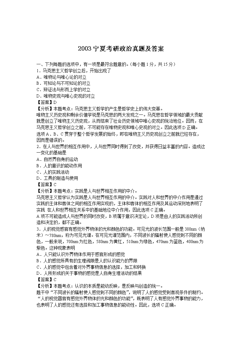 【文档名称】 2003宁夏考研政治真题及答案(Word版).doc