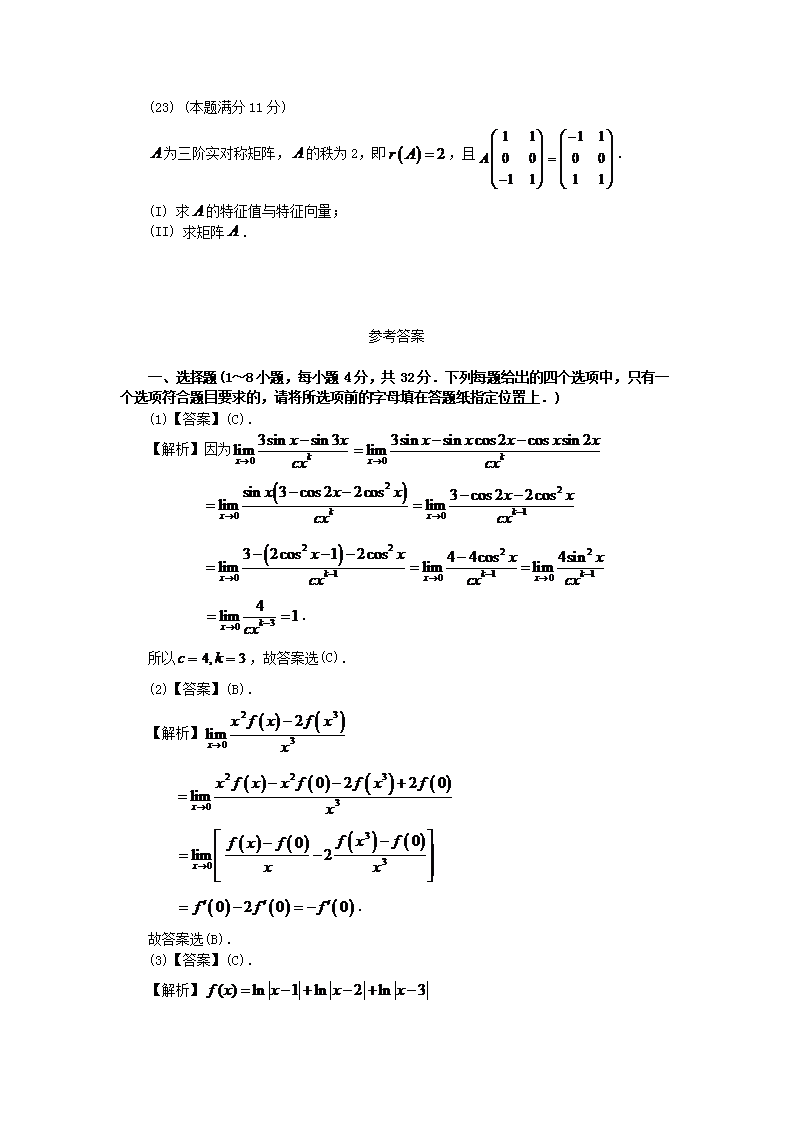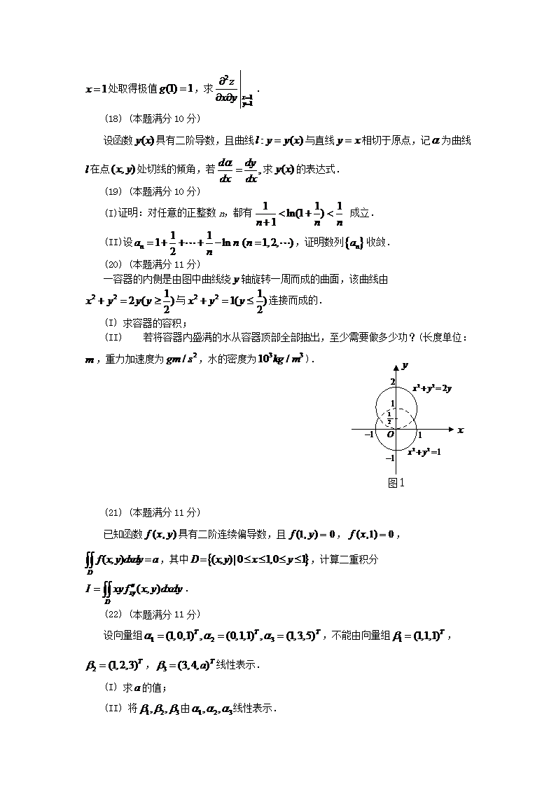 【文档名称】 2011宁夏考研数学二真题及答案(Word版).doc