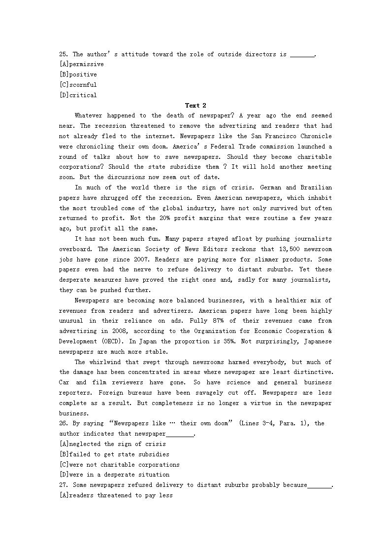 【文档名称】 2011宁夏考研英语二真题及答案(Word版).doc