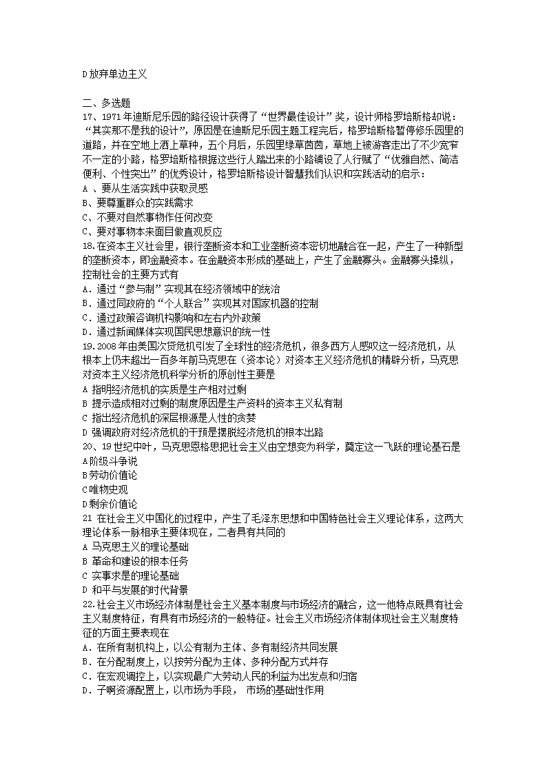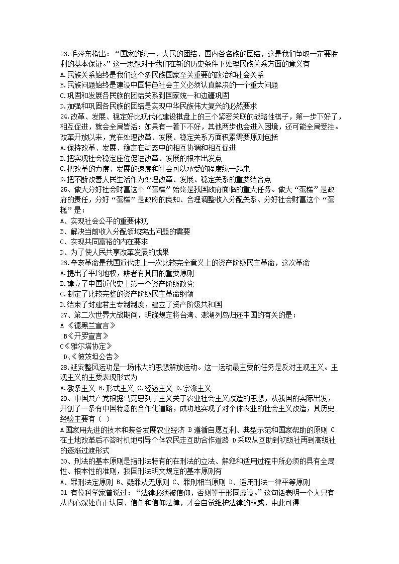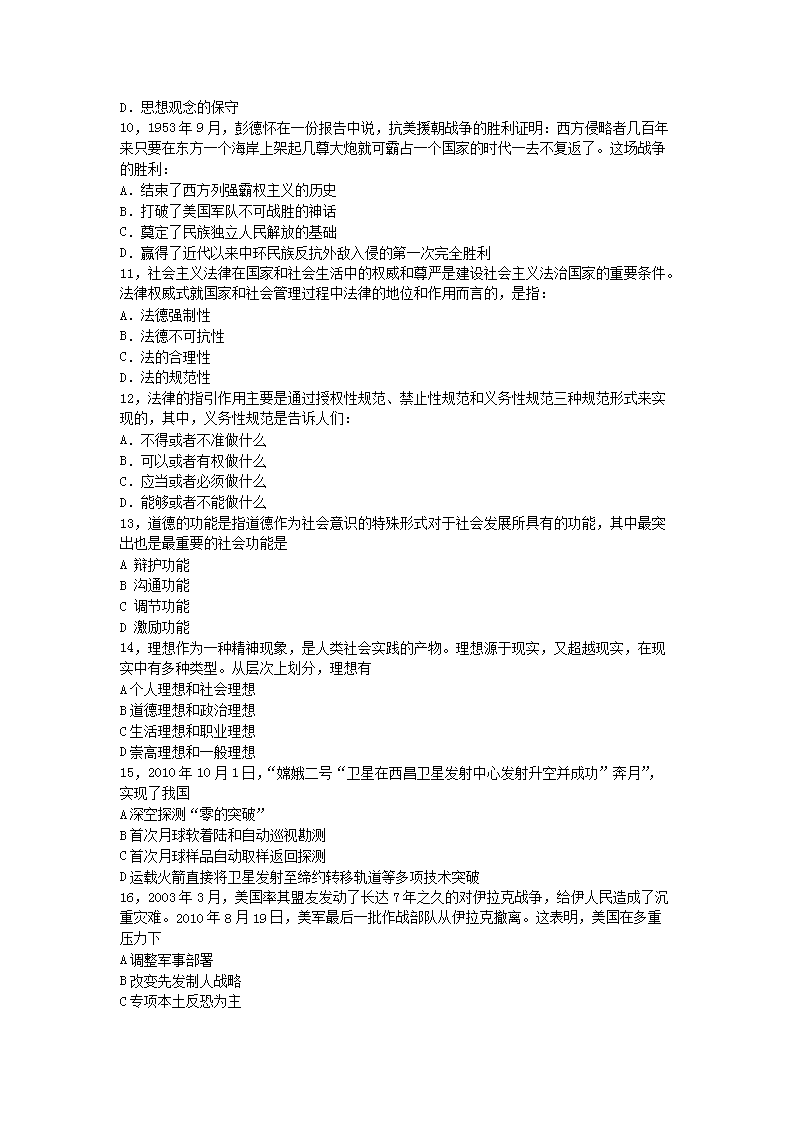【文档名称】 2011宁夏考研政治真题及答案(Word版).doc