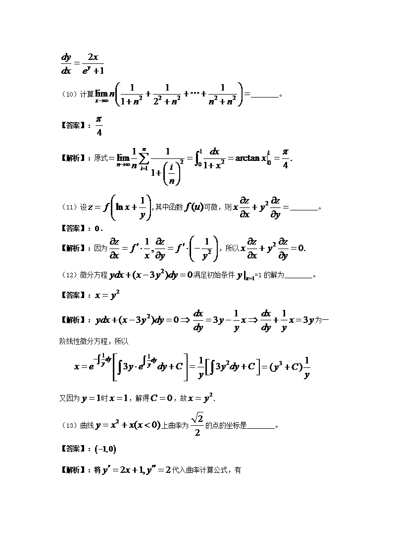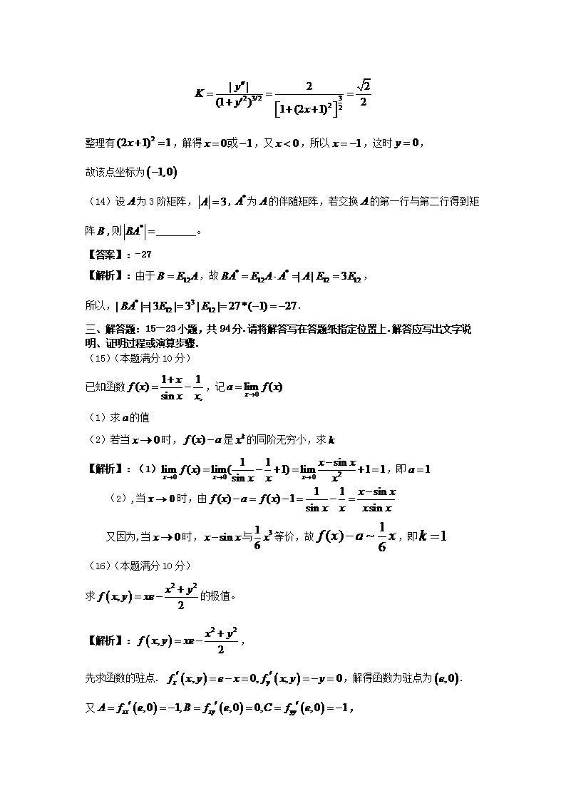 【文档名称】 2012宁夏考研数学二真题及答案(Word版).doc