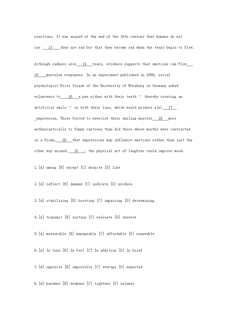 【文档名称】 2012宁夏考研英语一真题及答案(Word版).doc