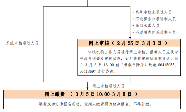 2.网上缴费时间为2022年3月5日至3月8日。完成报名提交并通过审核的人员可进行网上缴费,缴费成功方为报名成功。报考人员报名成功后,已缴费用不予退还。