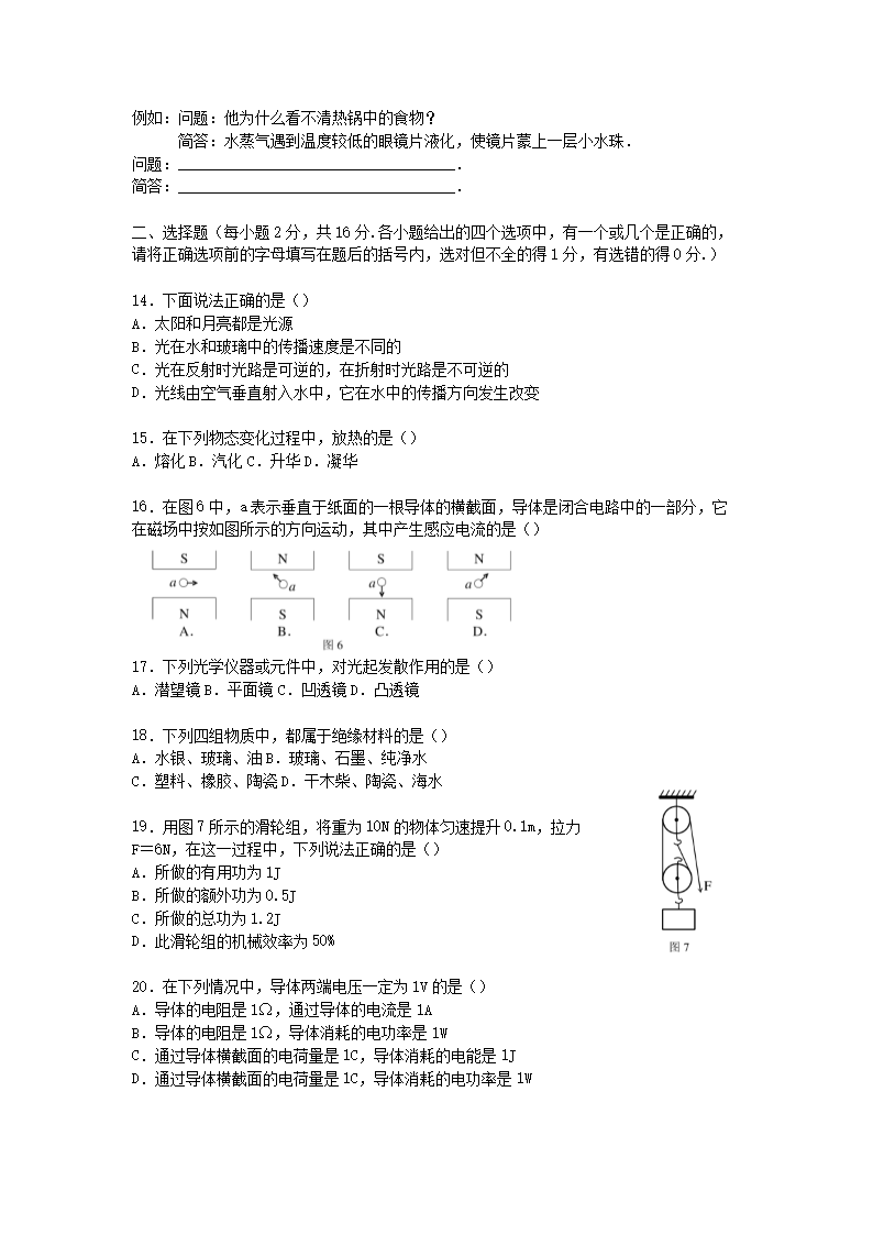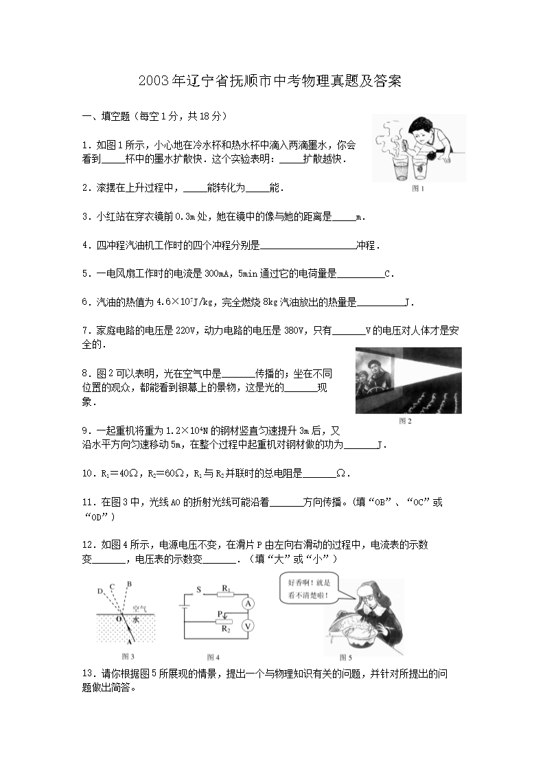 【文档预览】 无忧考网整理发布2003年辽宁省抚顺市中考物理真题及答案(Word版),前五页预览如下: