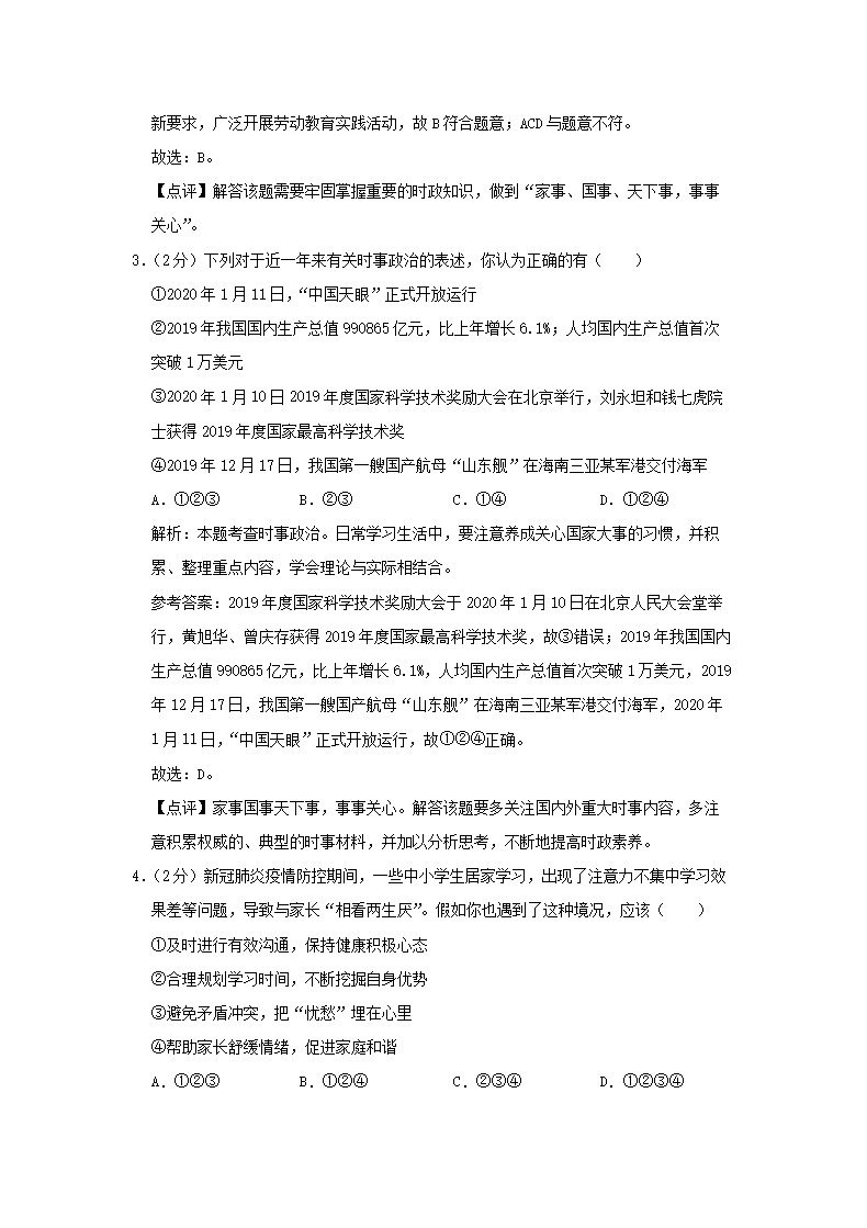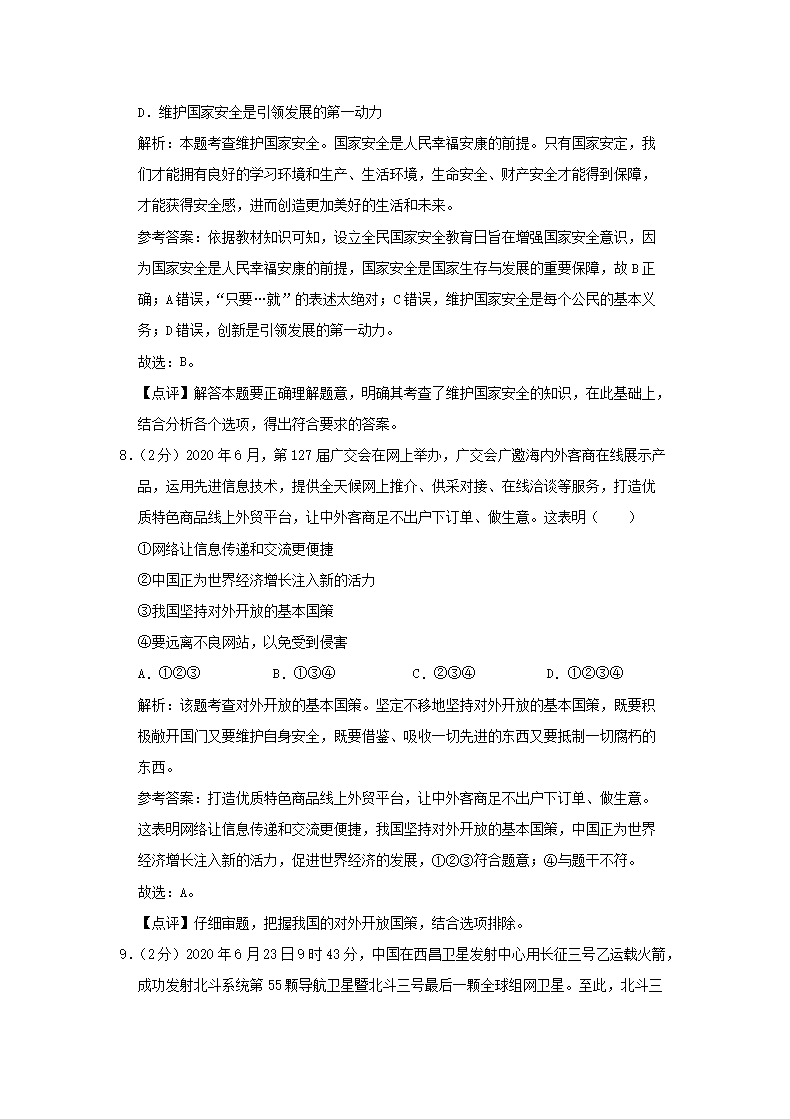 【文档名称】 2020山东省济宁市中考政治真题及答案(Word版).doc