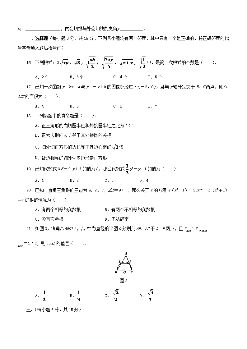 【文档预览】 无忧考网整理发布2001年河南平顶山中考数学真题及答案(Word版),前五页预览如下: