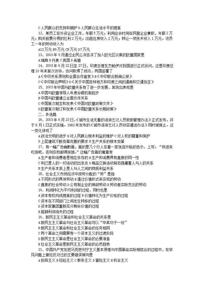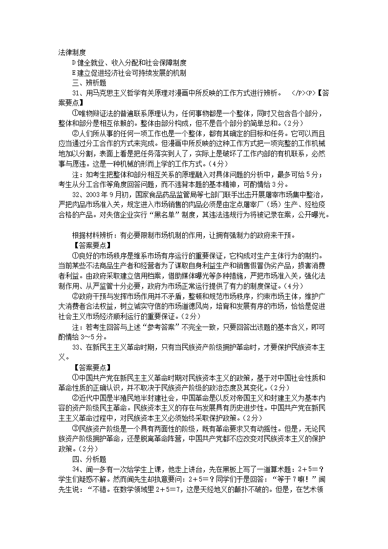 【文档名称】 2004吉林考研政治真题及答案(Word版).doc