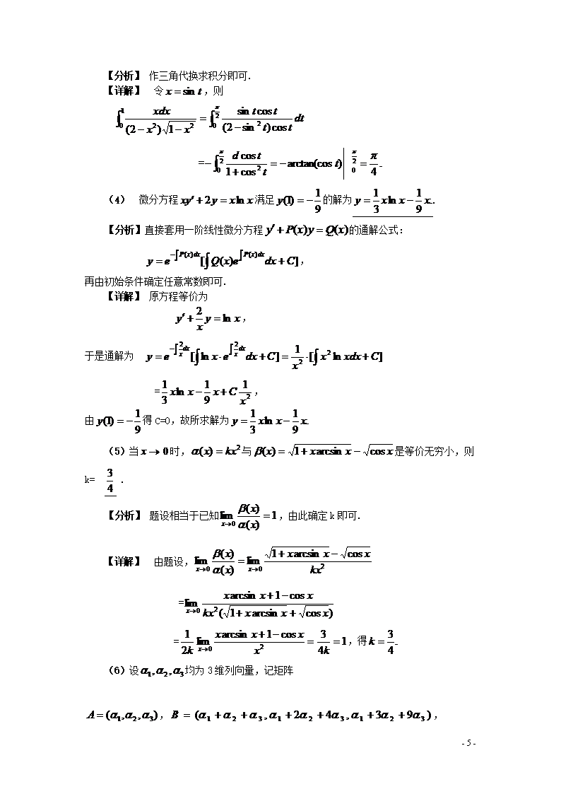 【文档名称】 2005吉林考研数学二真题及答案(Word版).doc