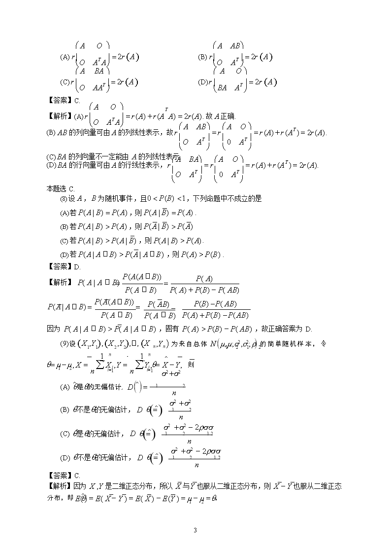 【文档名称】 2021黑龙江考研数学一真题及答案(Word版).doc