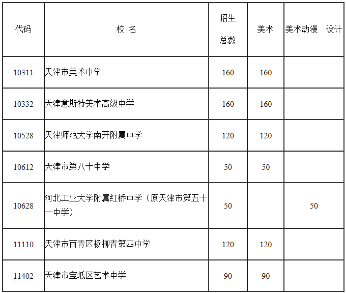注:原天津市美术中等专业学校已整建制并入天津市第一轻工业学校