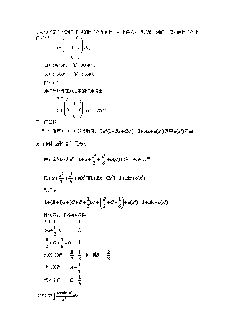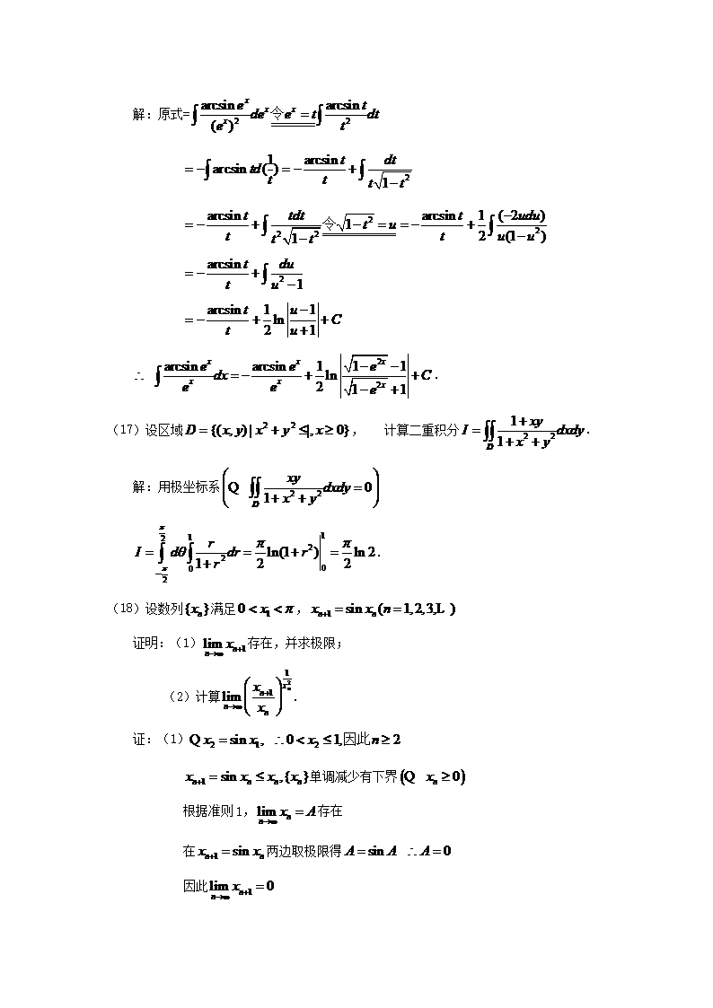 【文档预览】 无忧考网整理发布2006吉林考研数学二真题及答案(Word版),前五页预览如下: