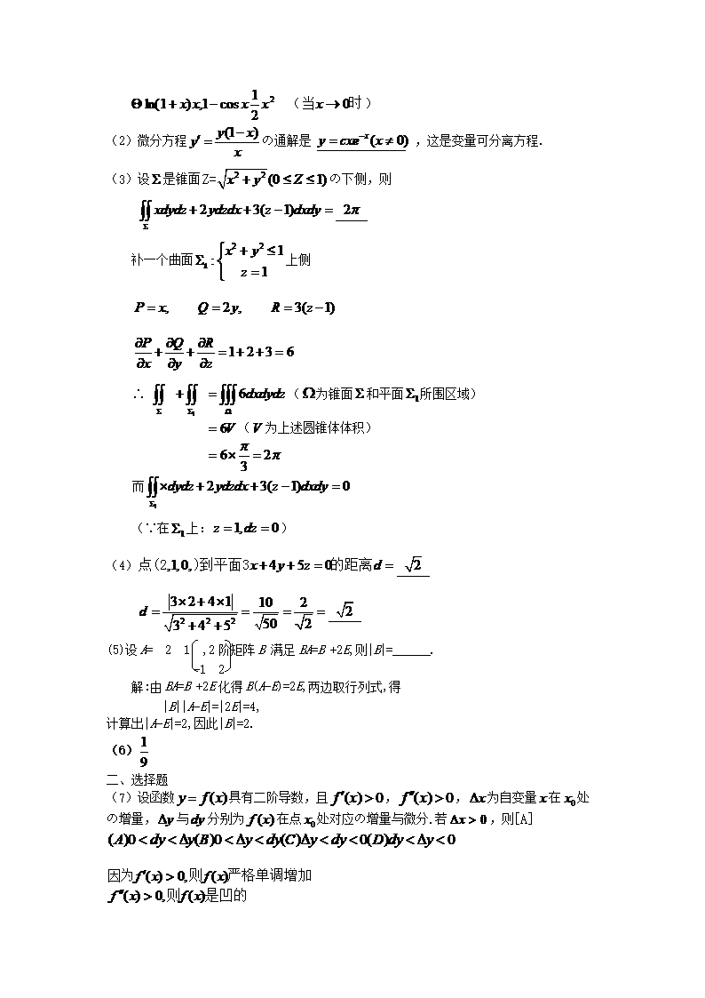 【文档名称】 2006吉林考研数学一真题及答案(Word版).doc