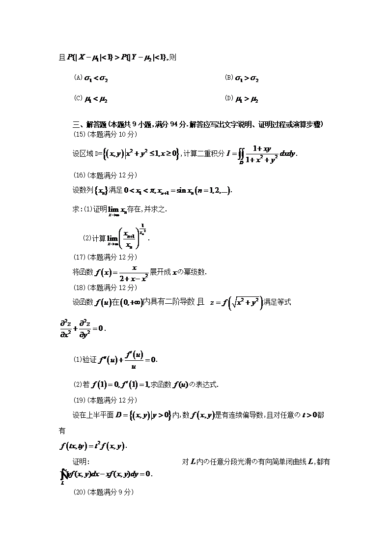 【文档预览】 无忧考网整理发布2006吉林考研数学一真题及答案(Word版),前五页预览如下: