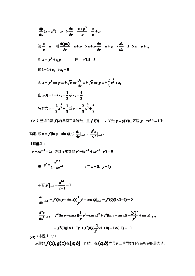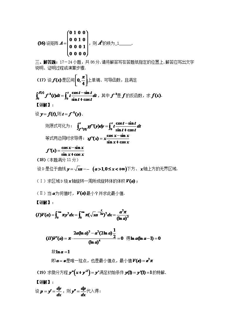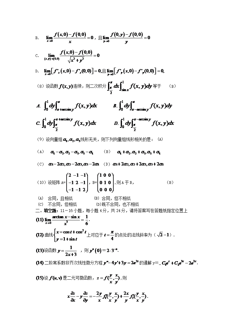 【文档名称】 2007吉林考研数学二真题及答案(Word版).doc