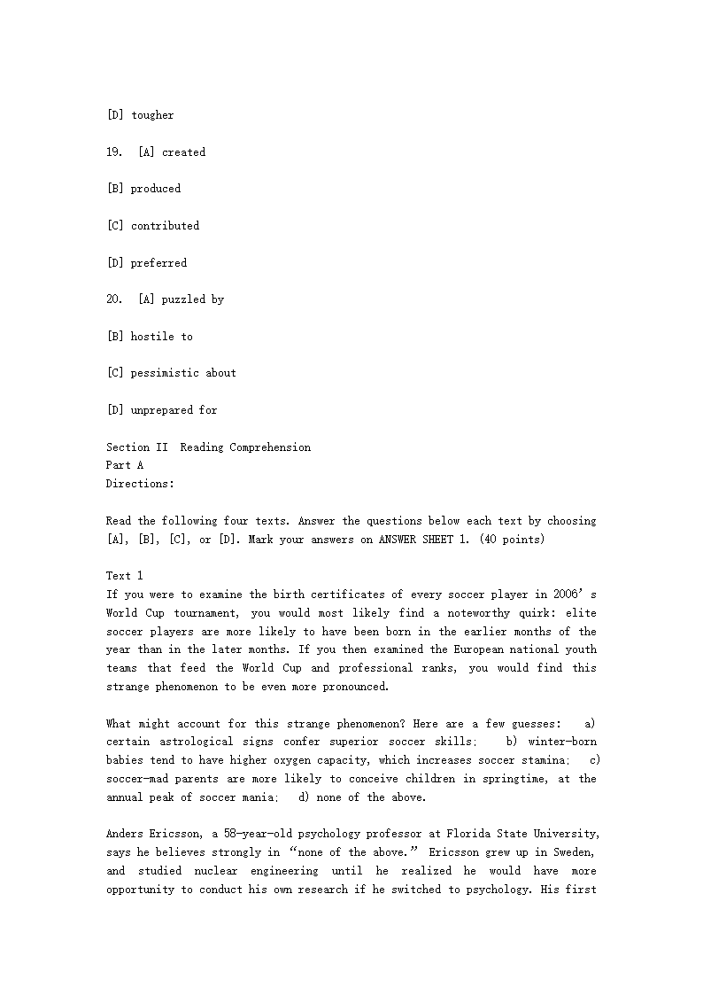 【文档名称】 2007吉林考研英语一真题及答案(Word版).doc
