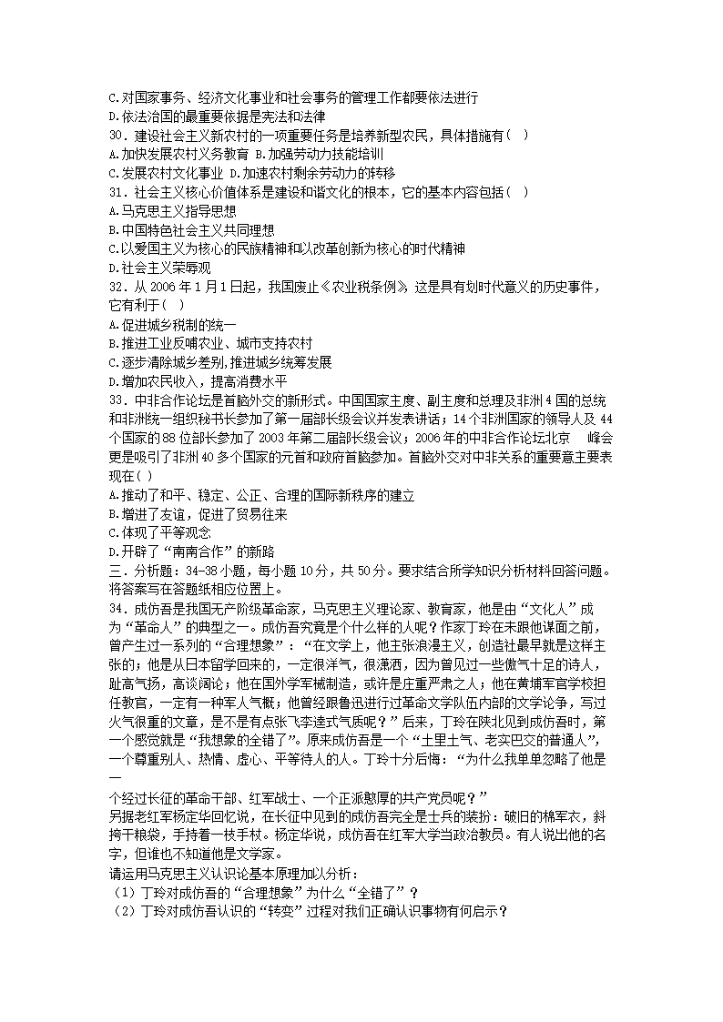 【文档预览】 无忧考网整理发布2007吉林考研政治真题及答案(Word版),前五页预览如下:
