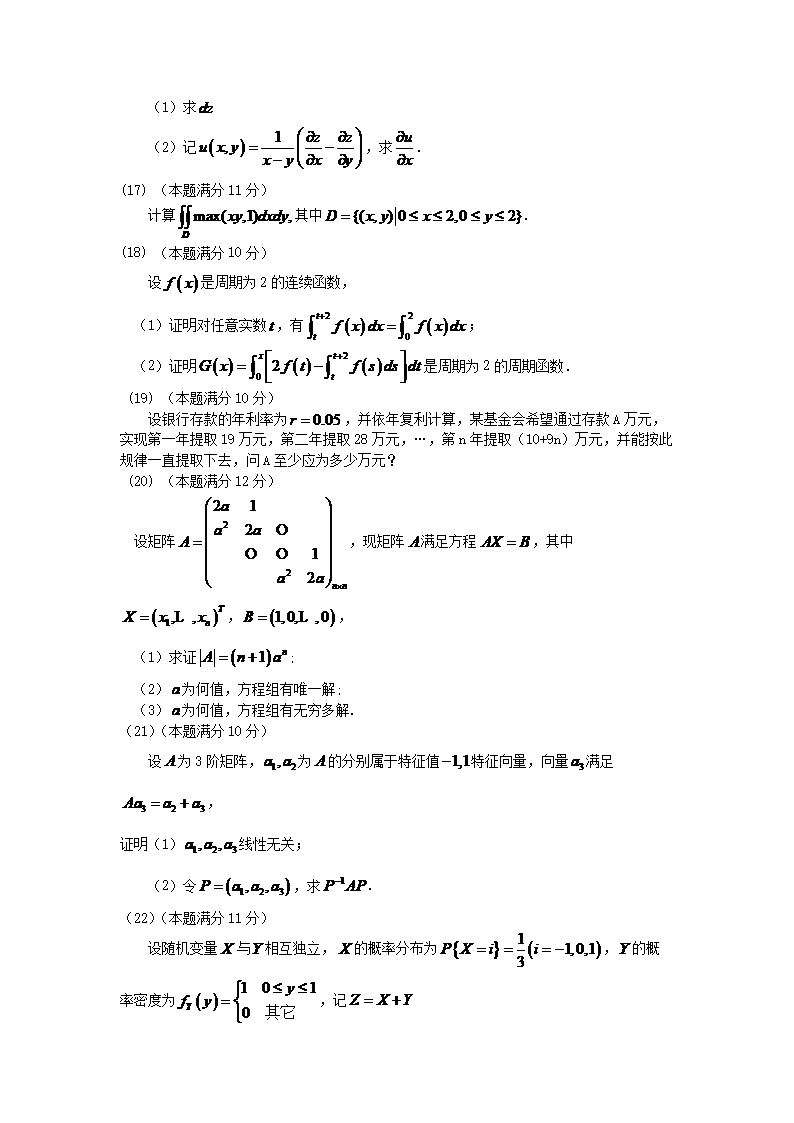 【文档预览】 无忧考网整理发布2008吉林考研数学三真题及答案(Word版),前五页预览如下: