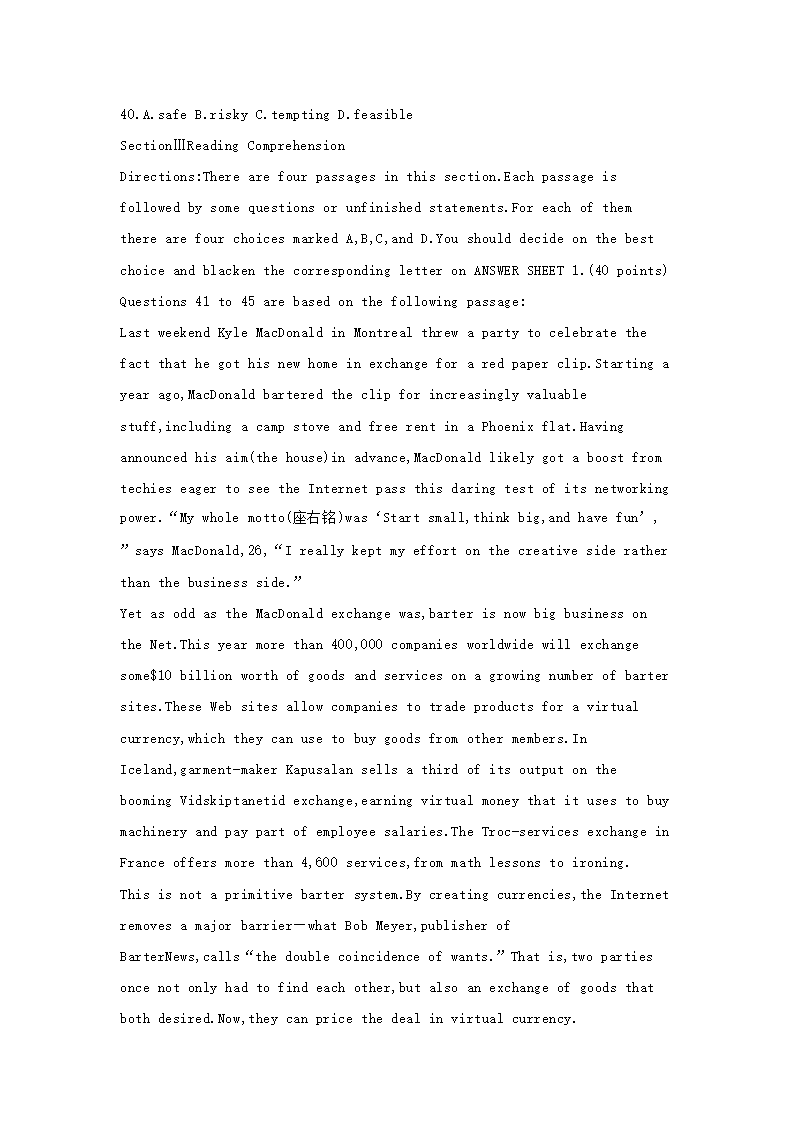 【文档名称】 2008吉林考研英语二真题及答案(Word版).doc
