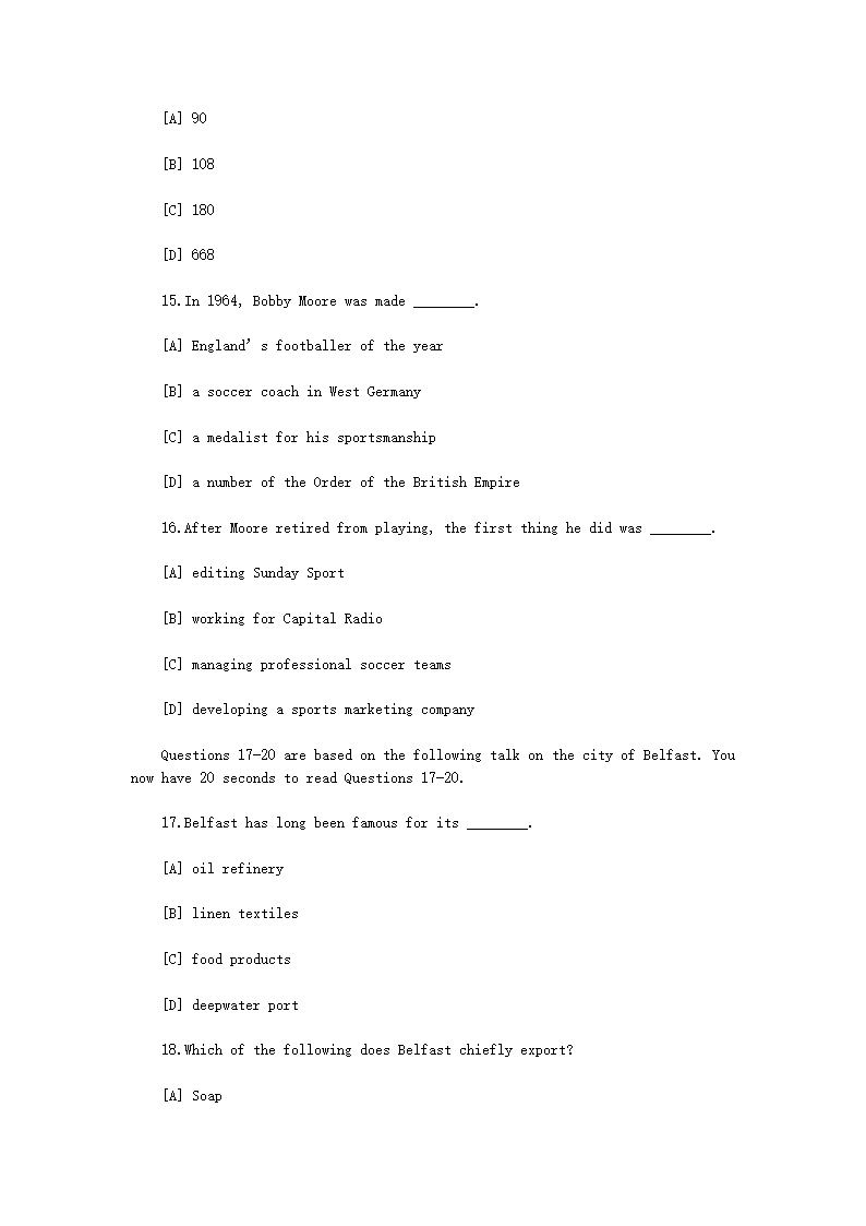 【文档名称】 2004辽宁考研英语一真题及答案(Word版).doc