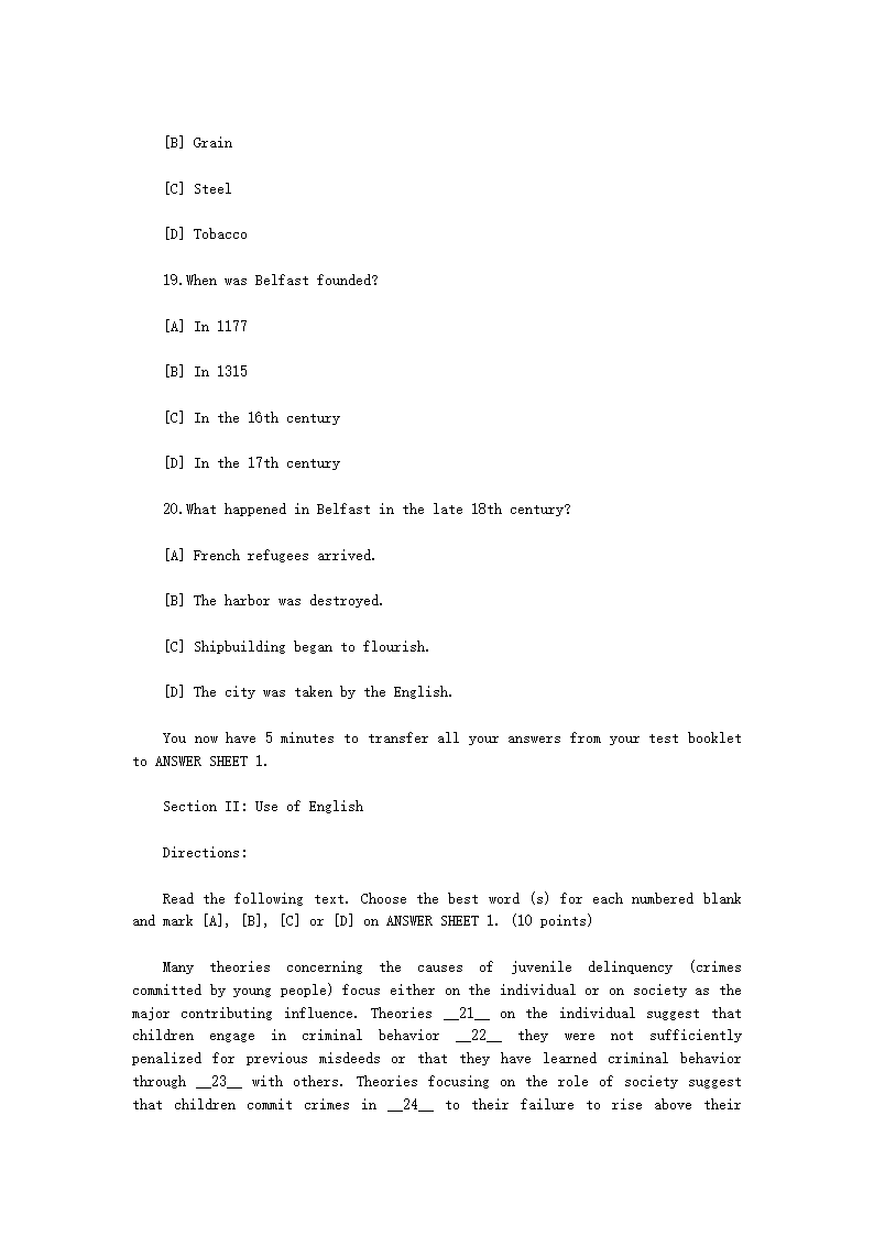 【文档预览】 无忧考网整理发布2004辽宁考研英语一真题及答案(Word版),前五页预览如下: