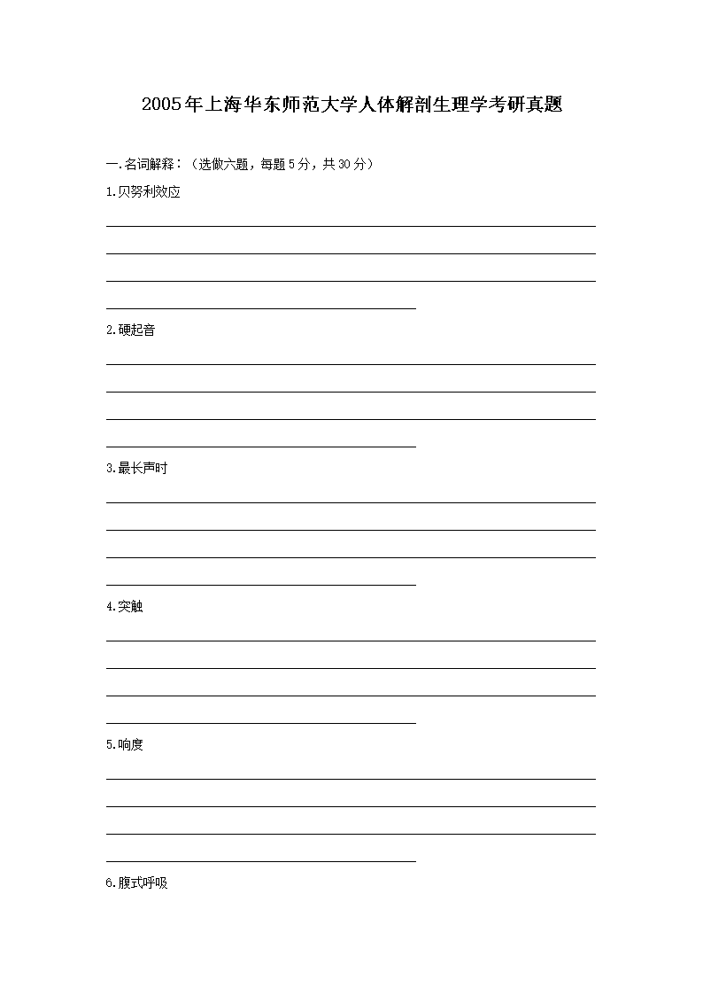 【文档名称】 2005年上海华东师范大学人体解剖生理学考研真题(Word版).doc