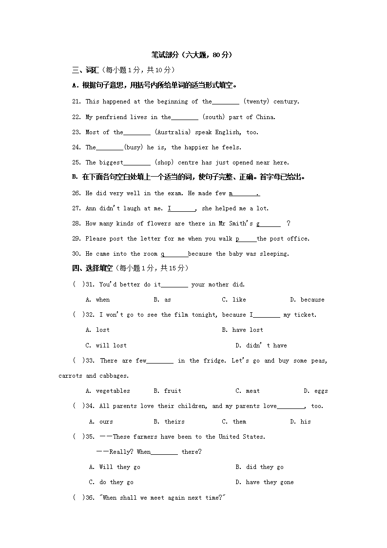 【文档名称】 2002年河南三门峡中考英语真题及答案(Word版).doc