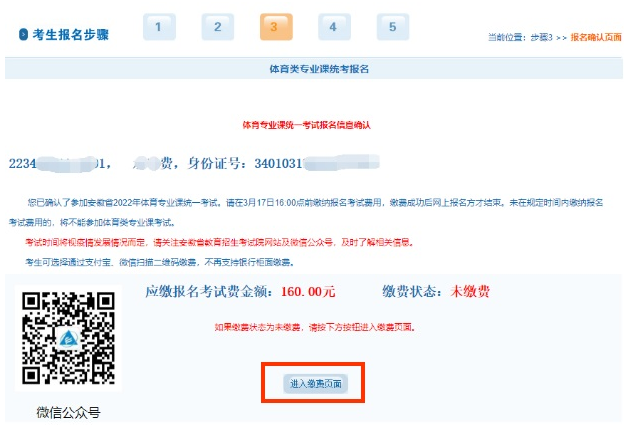 体育专业课统一考试采取网上报名、网上缴费的方式。符合报名条件的考生请登录gkbm.ahzsks.cn进行体育专业课省统考报名和缴费。流程参照以下说明: