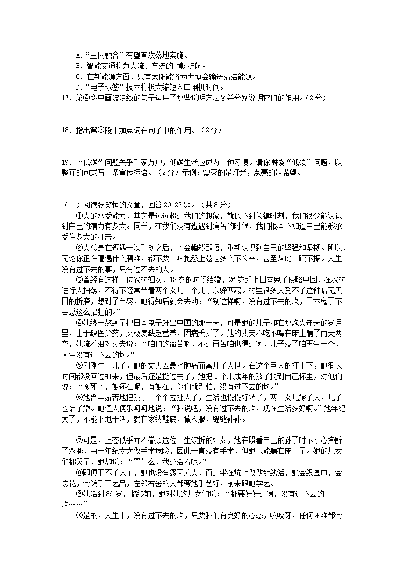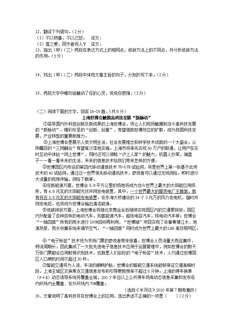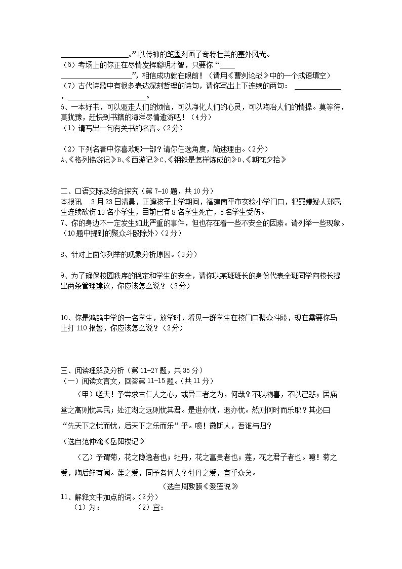 【文档预览】 无忧考网整理发布2010年黑龙江大兴安岭中考语文真题及答案(Word版),前五页预览如下: