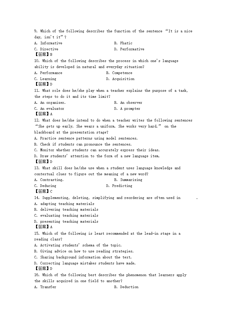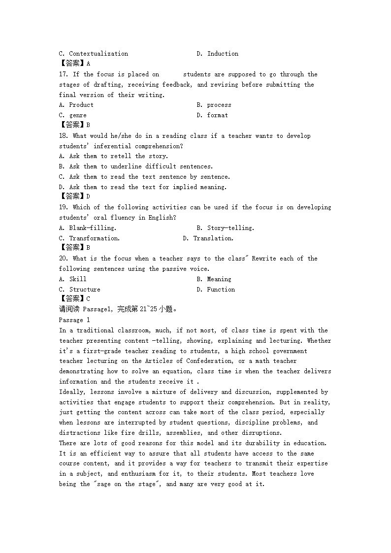 【文档预览】 无忧考网整理发布2020下半年江苏教师资格初中英语学科知识与教学能力真题及答案(Word版),前五页预览如下: