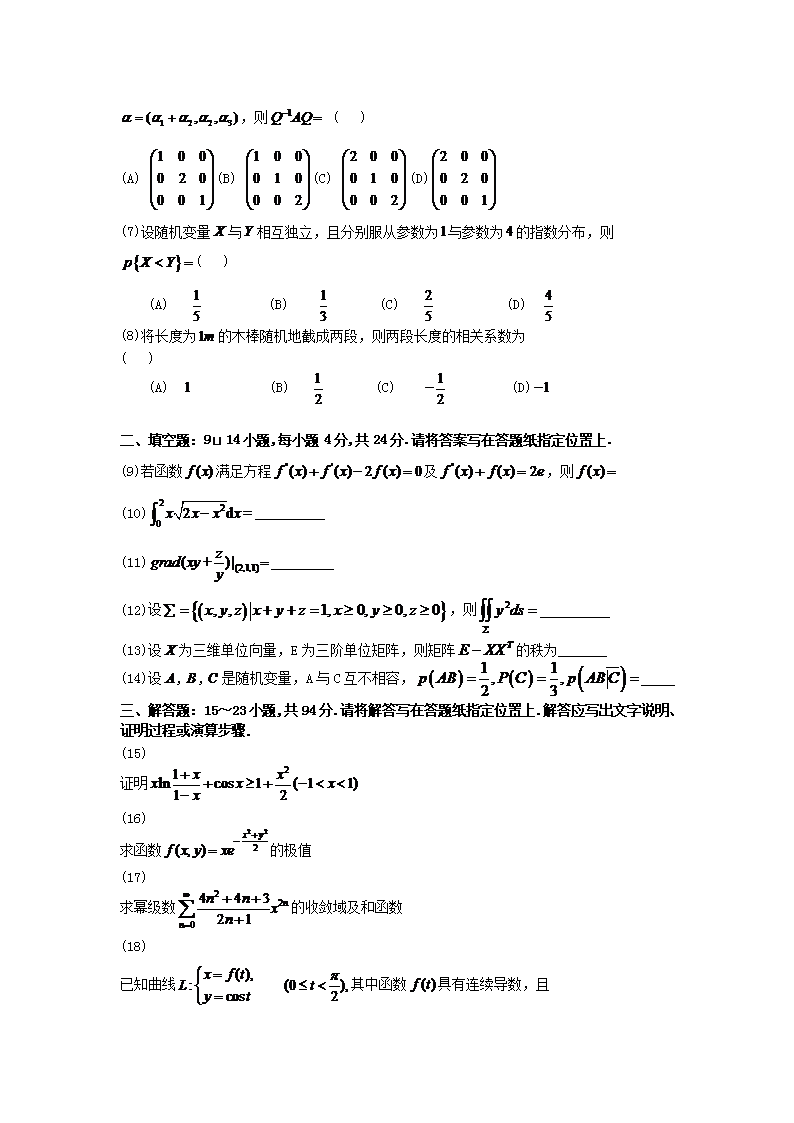 【文档预览】 无忧考网整理发布2012四川考研数学一真题及答案(Word版),前五页预览如下: