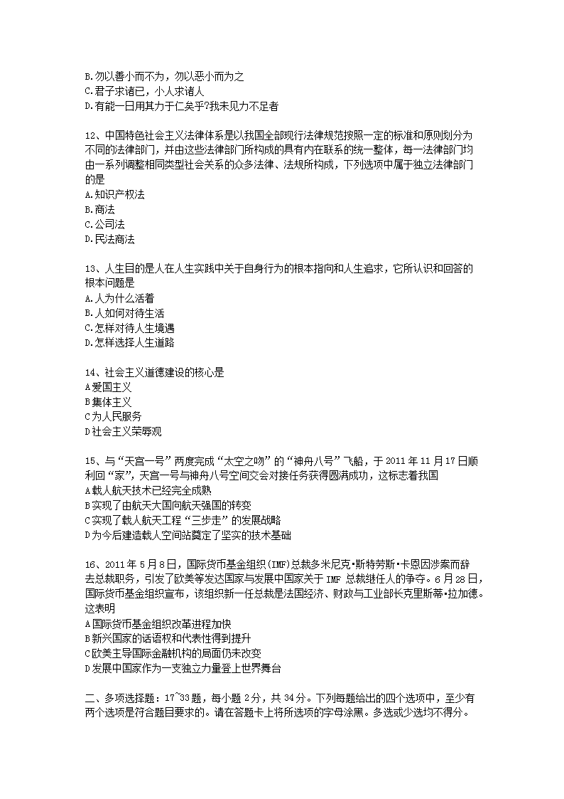 【文档名称】 2012四川考研政治真题及答案(Word版).doc