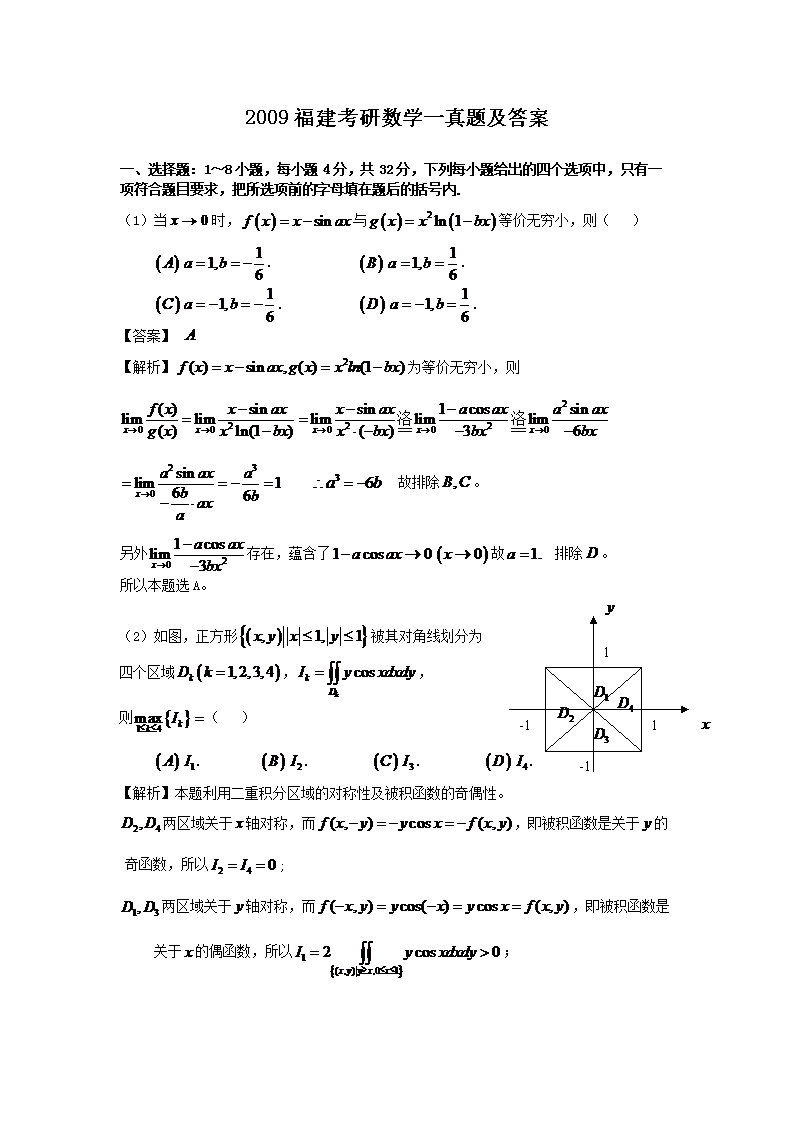 【文档名称】 2009福建考研数学一真题及答案(Word版).doc