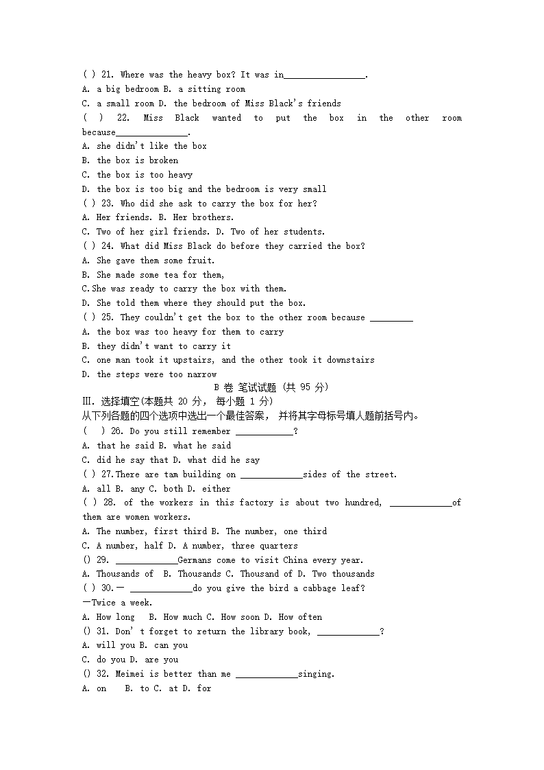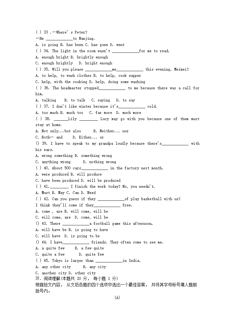 【文档预览】 无忧考网整理发布2001年辽宁省本溪市中考英语真题及答案(Word版),前五页预览如下: