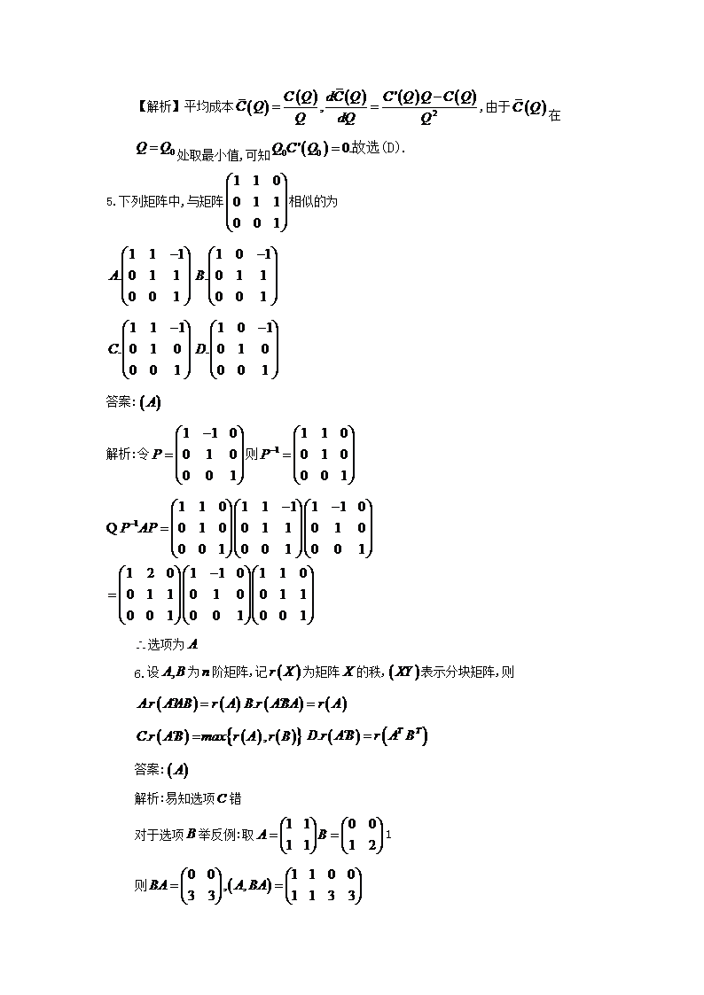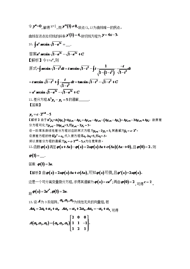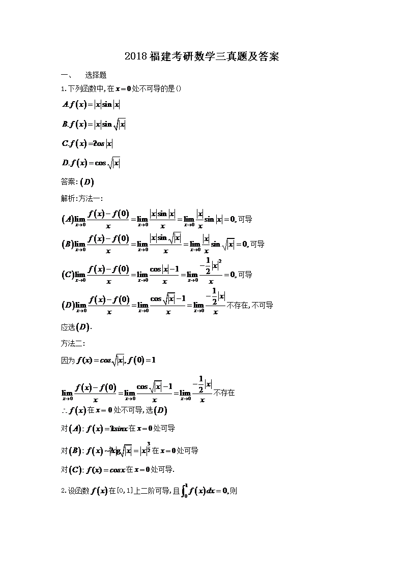 【文档名称】 2018福建考研数学三真题及答案(Word版).doc