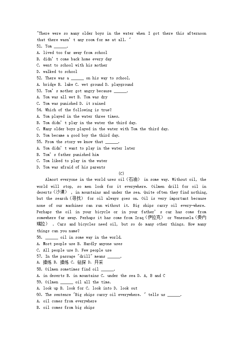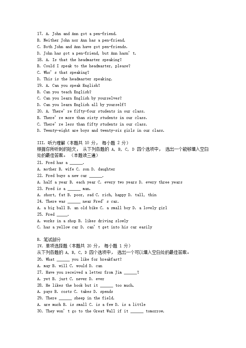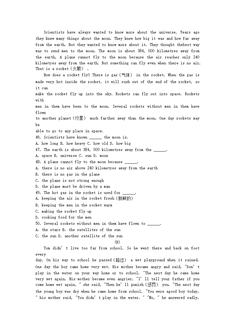 【文档预览】 无忧考网整理发布2000年辽宁省本溪市中考英语真题及答案(Word版),前五页预览如下: