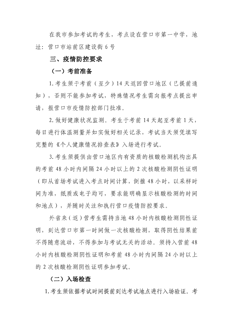 辽宁营口2022年普通高等学校运动训练、武术与民族传统体育专业单独招生文化考试公告