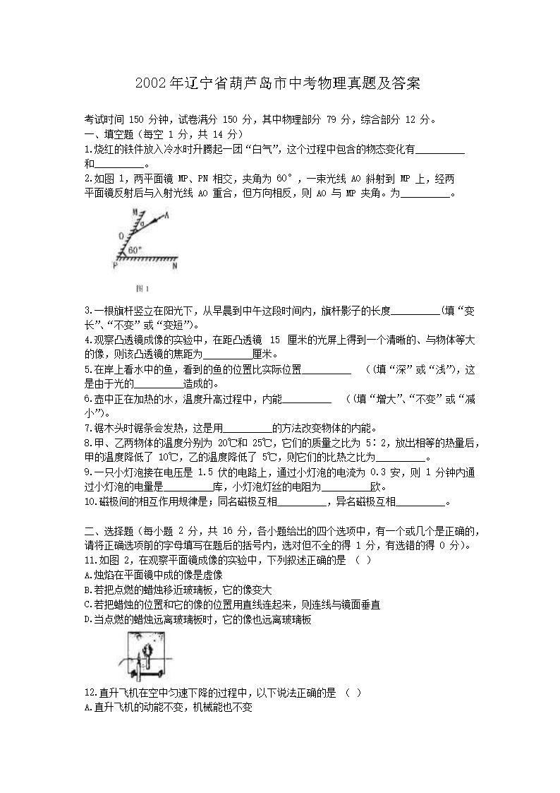 【文档名称】 2002年辽宁省葫芦岛市中考物理真题及答案(Word版).doc