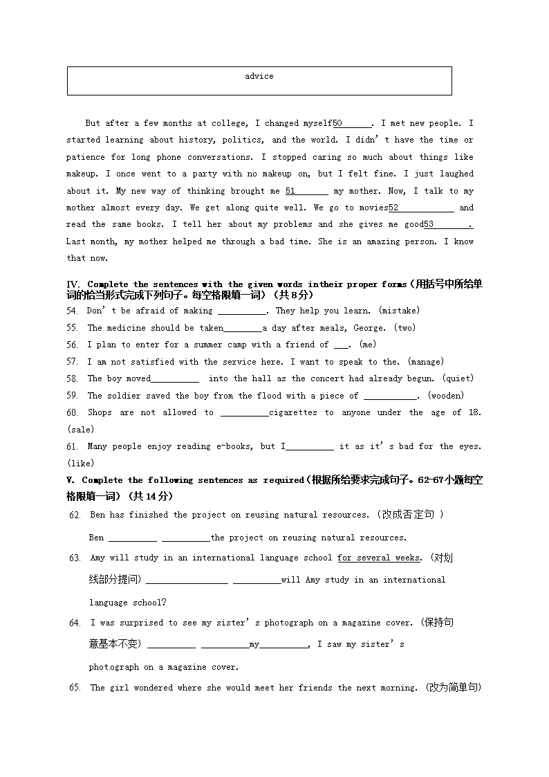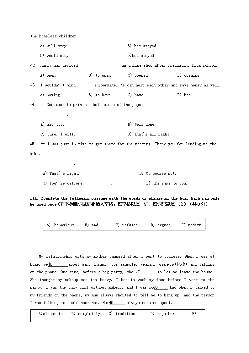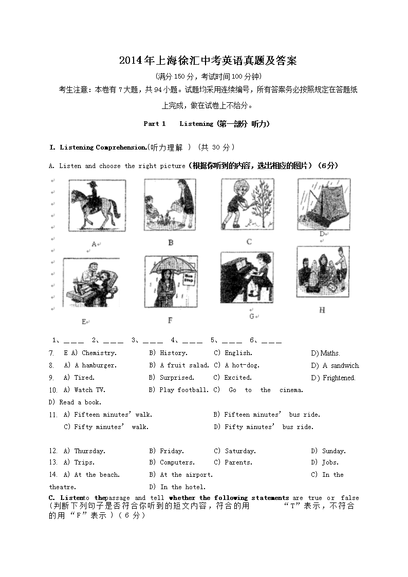 【文档预览】 无忧考网整理发布2014年上海徐汇中考英语真题及答案(Word版),前五页预览如下: