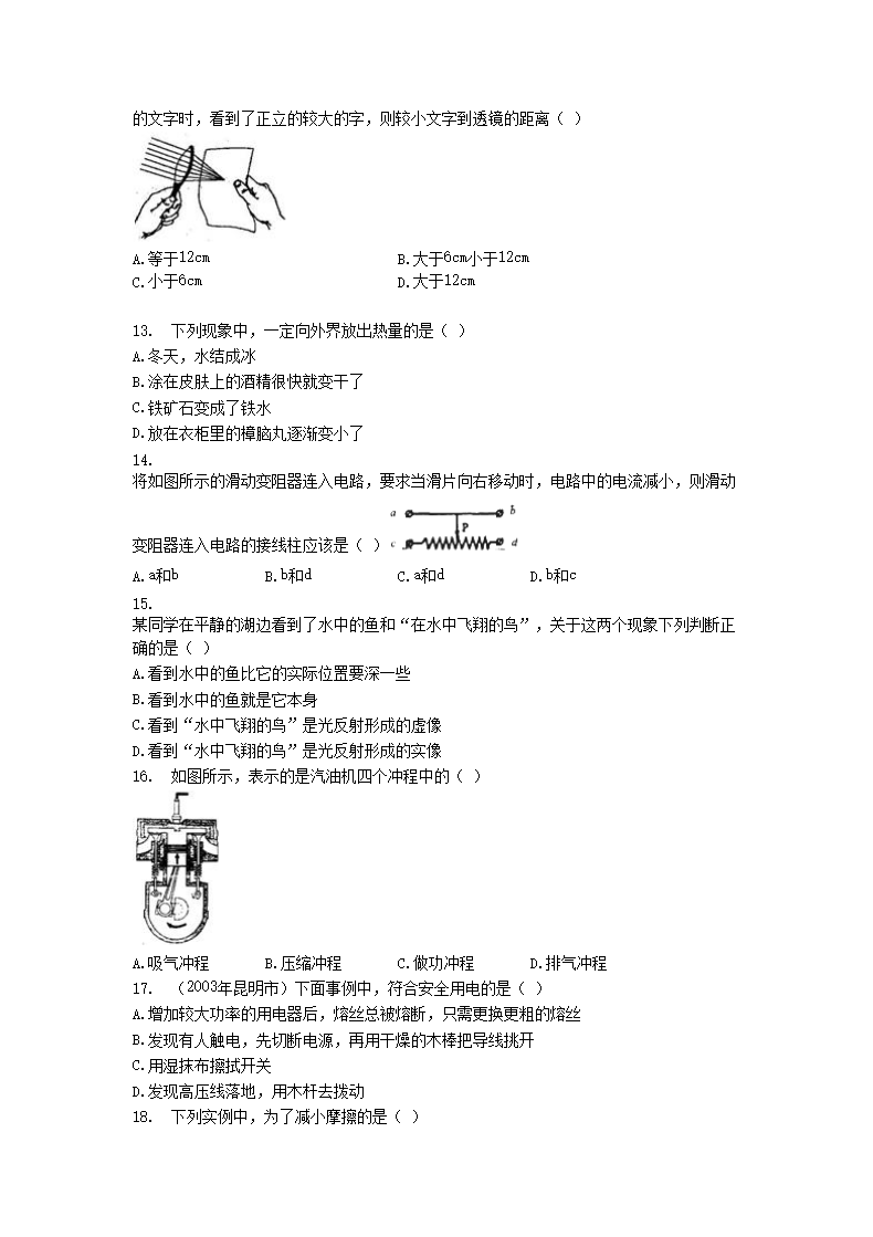 【文档名称】 2003年云南昆明中考物理真题及答案(Word版).doc
