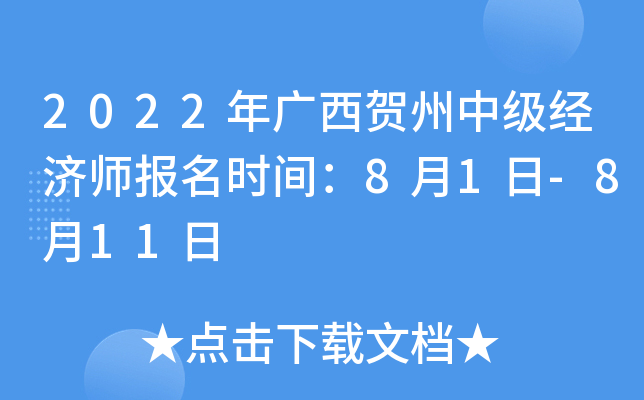 2022年广西贺州中级经济师网上报名时间:2022年8月1日8:00至8月11日17:00。报考人员登录广西人事考试网(www.gxpta.com.cn)或中国人事考试网(www.cpta.com.cn)—“全国专业技术资格考试报名服务平台”按流程进行网上填报信息。