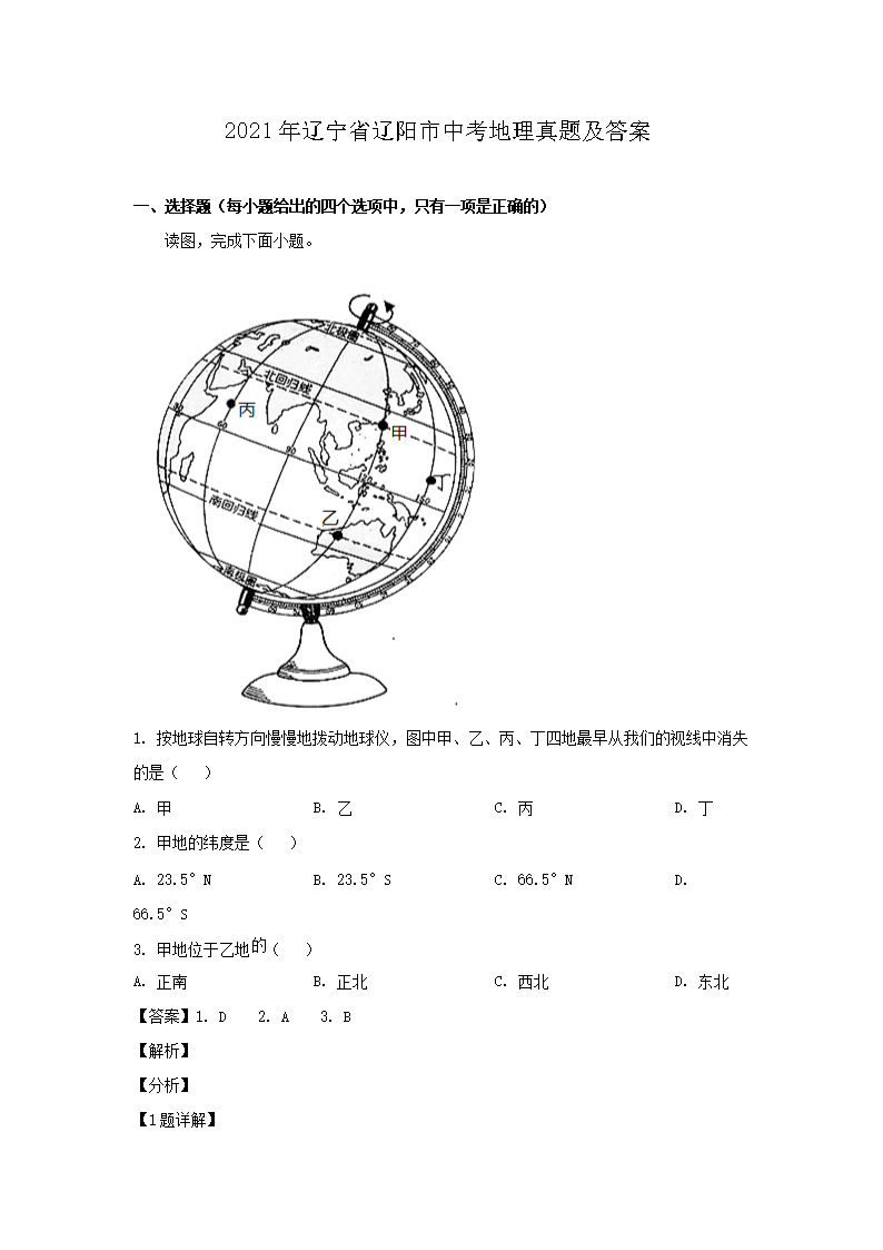 【文档名称】 2021年辽宁省辽阳市中考地理真题及答案(Word版).doc