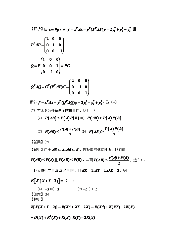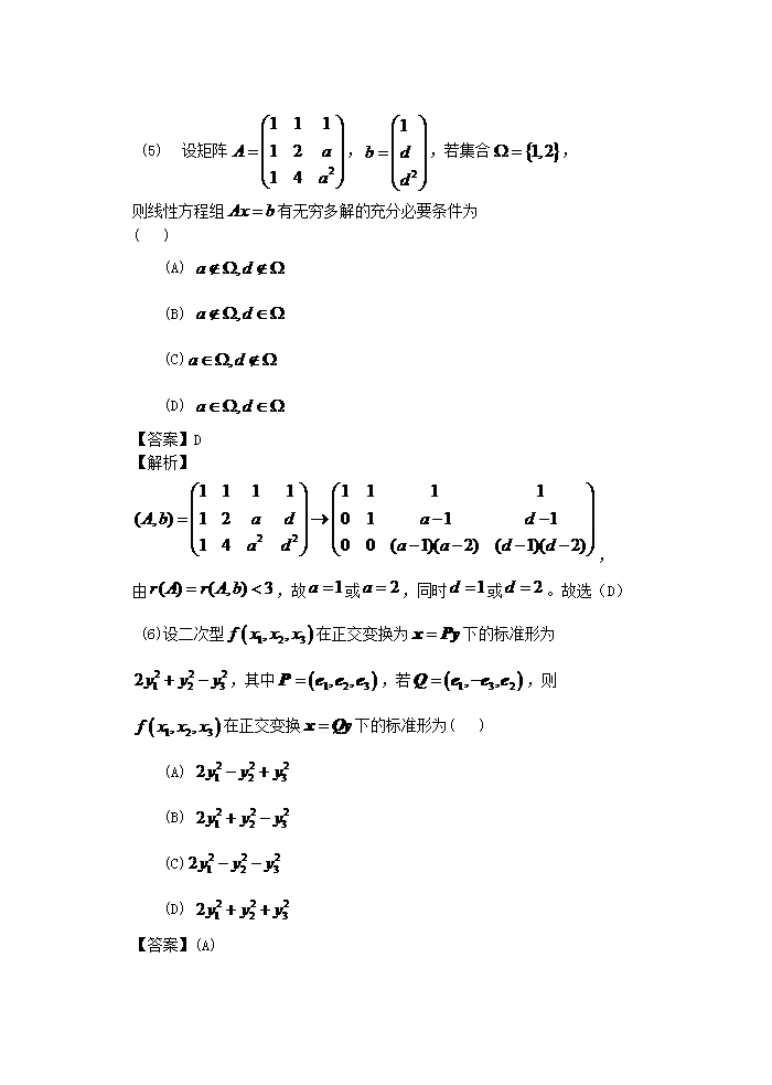 【文档名称】 2015河南考研数学一真题及答案(Word版).doc