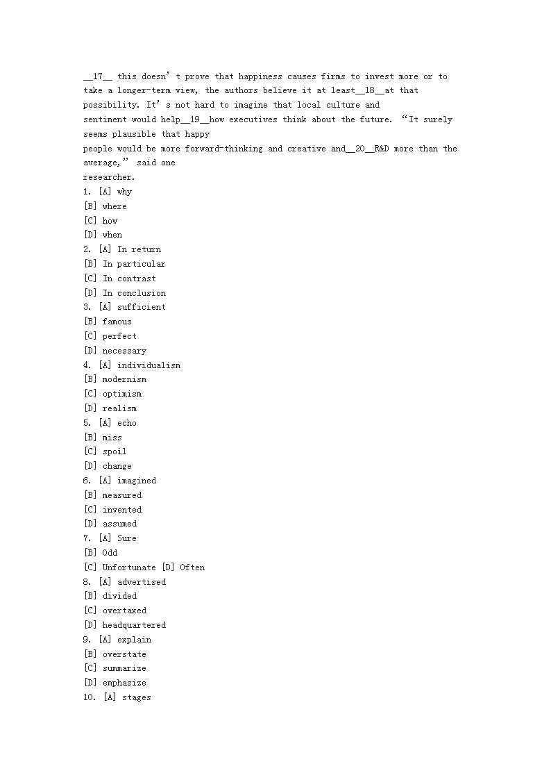 【文档名称】 2016河南考研英语二真题及答案(Word版).doc