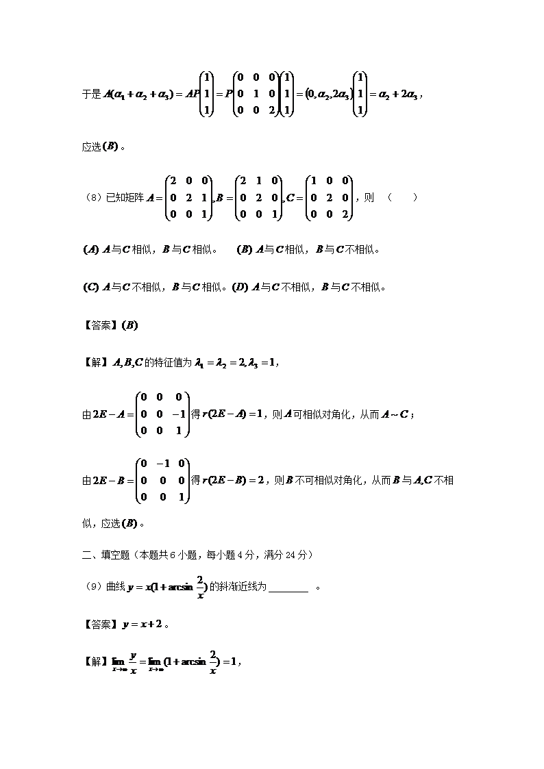 【文档名称】 2017河南考研数学二真题及答案(Word版).doc
