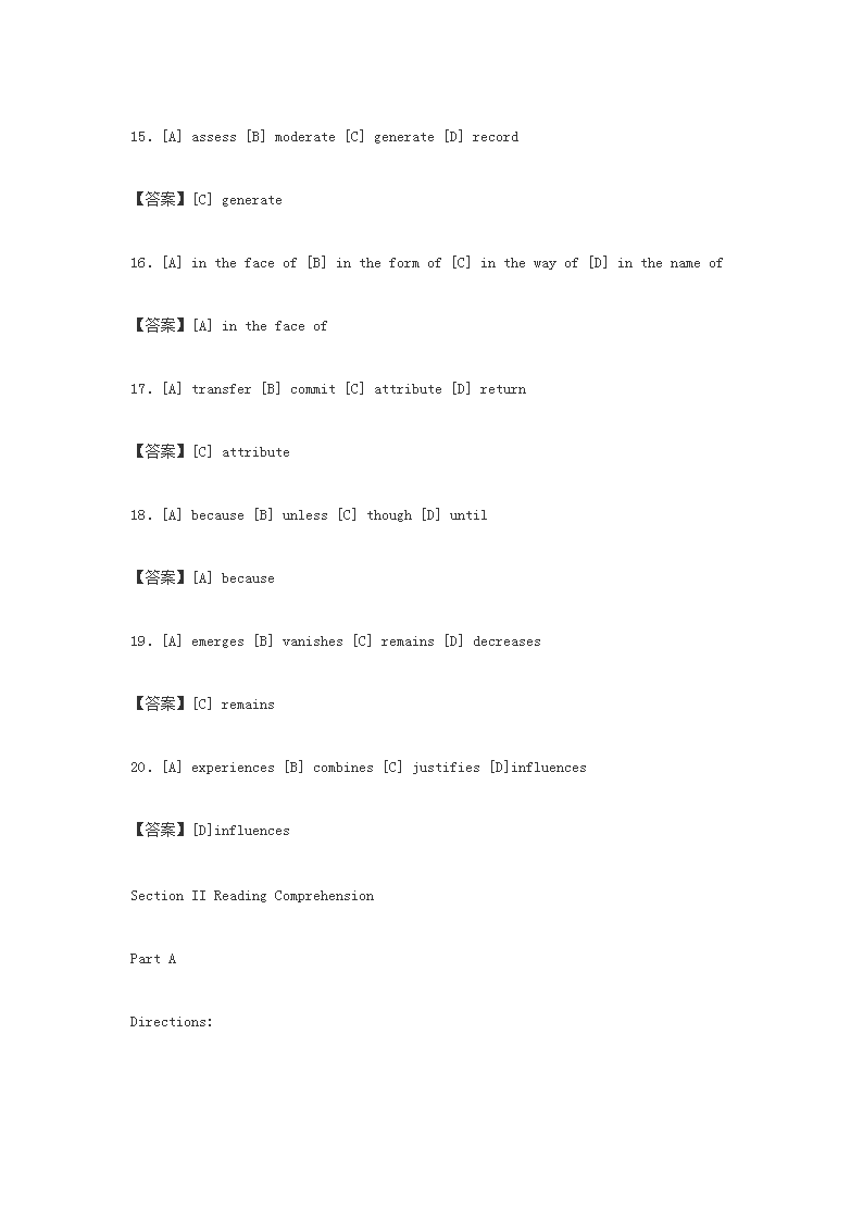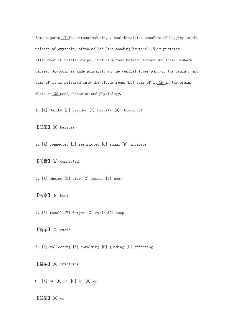【文档名称】 2017河南考研英语一真题及答案(Word版).doc