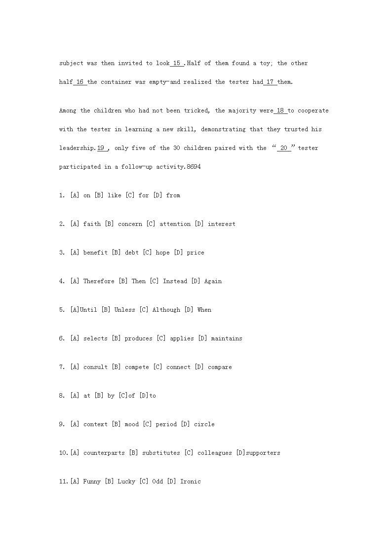 【文档名称】 2018河南考研英语一真题及答案(Word版).doc