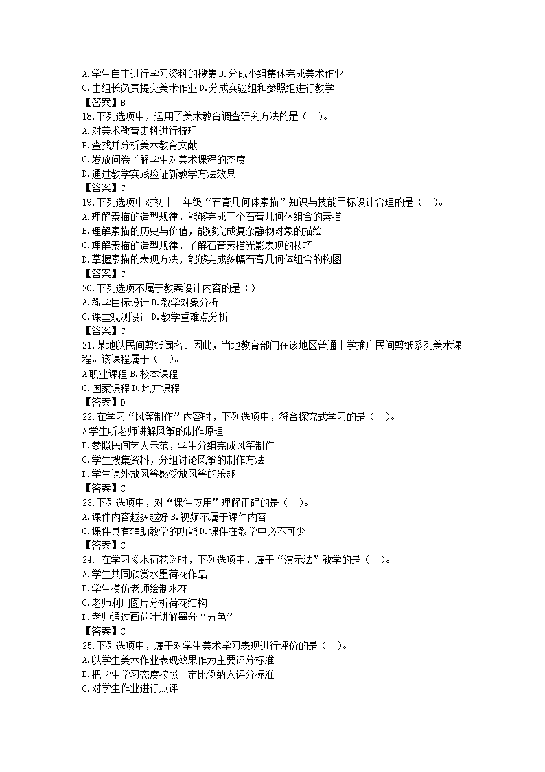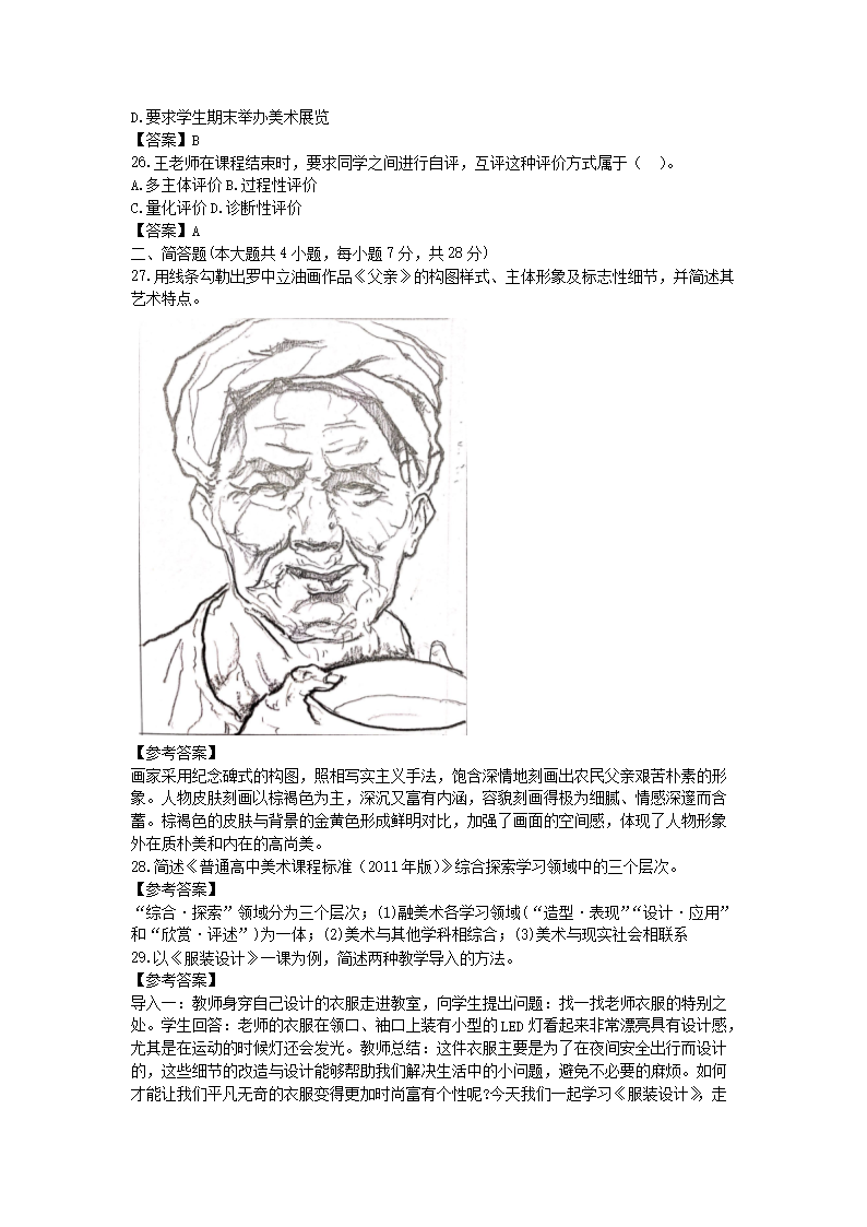 【文档名称】 2020下半年上海教师资格初中美术学科知识与教学能力真题及答案(Word版).doc