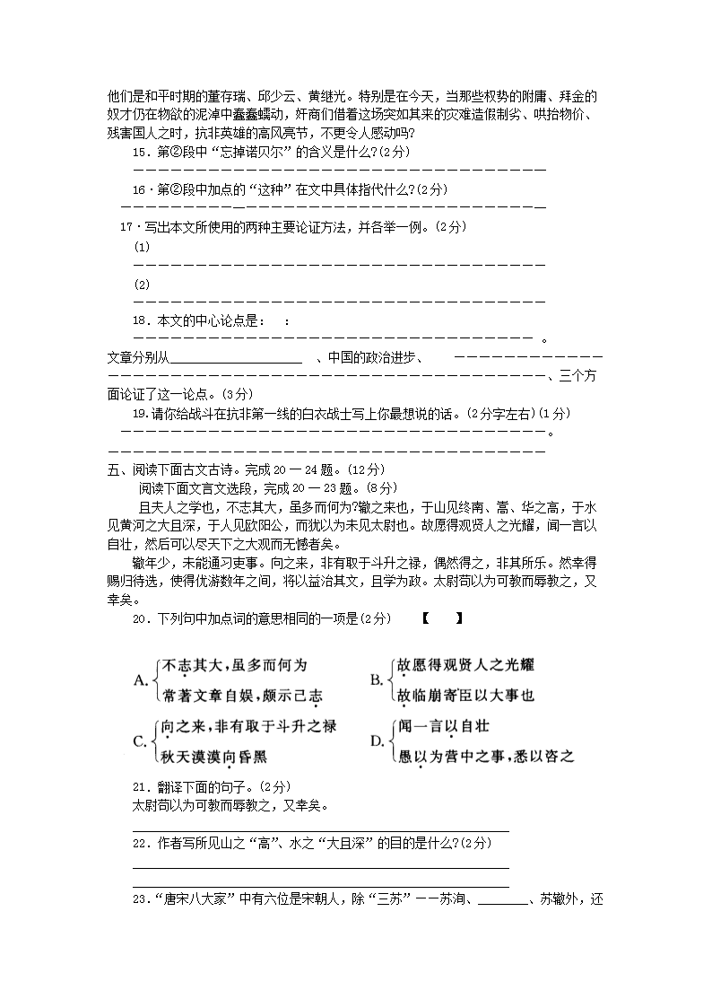 【文档名称】 2003年河南南阳中考语文真题及答案(Word版).doc