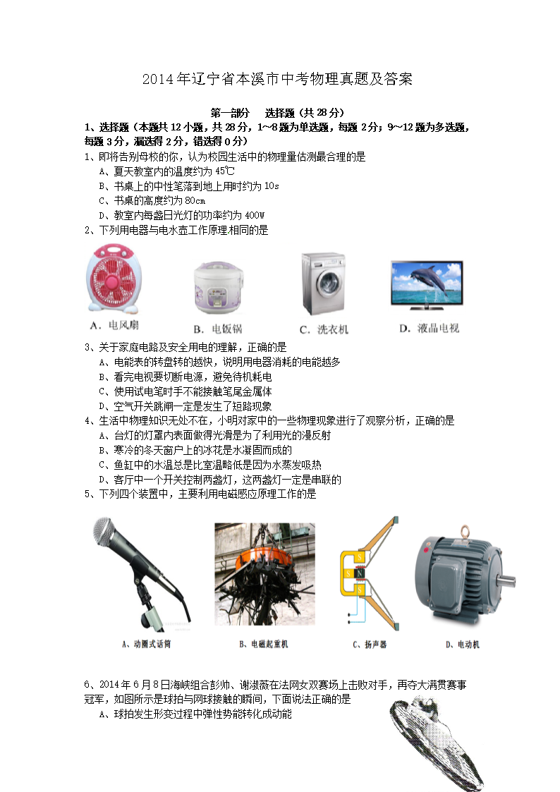 【文档预览】 无忧考网整理发布2014年辽宁省本溪市中考物理真题及答案(Word版),前五页预览如下: