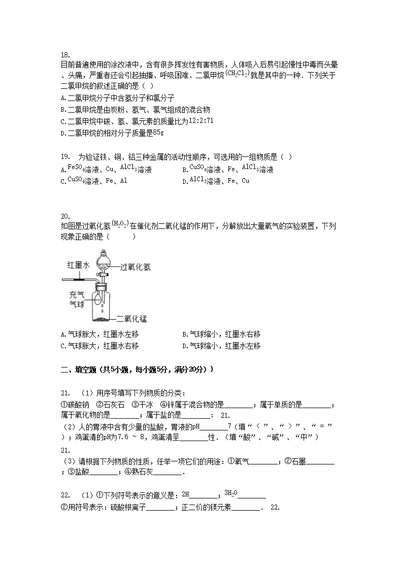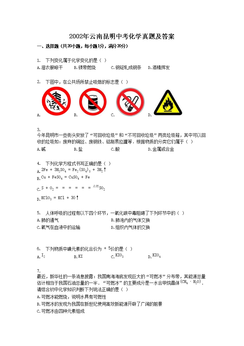 【文档名称】 2002年云南昆明中考化学真题及答案(Word版).doc